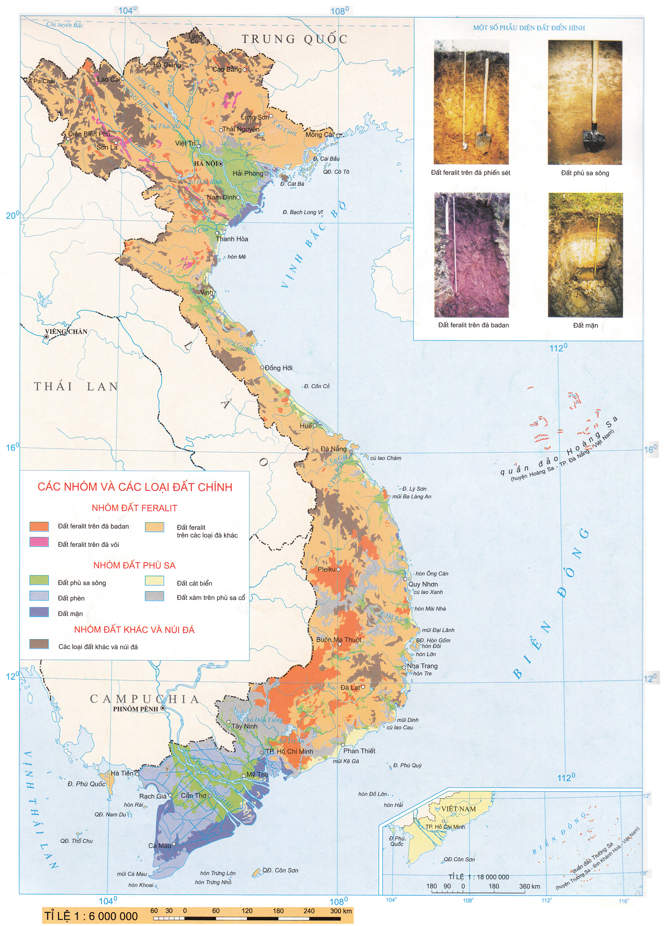 . Đất feralit trên các loại đá mẹ (đá axit, đá phiến sét…) chiếm diện tích lớn nhất và phân bố rộng rãi ở miền núi và các đồi núi sót ở miền đồng bằng.