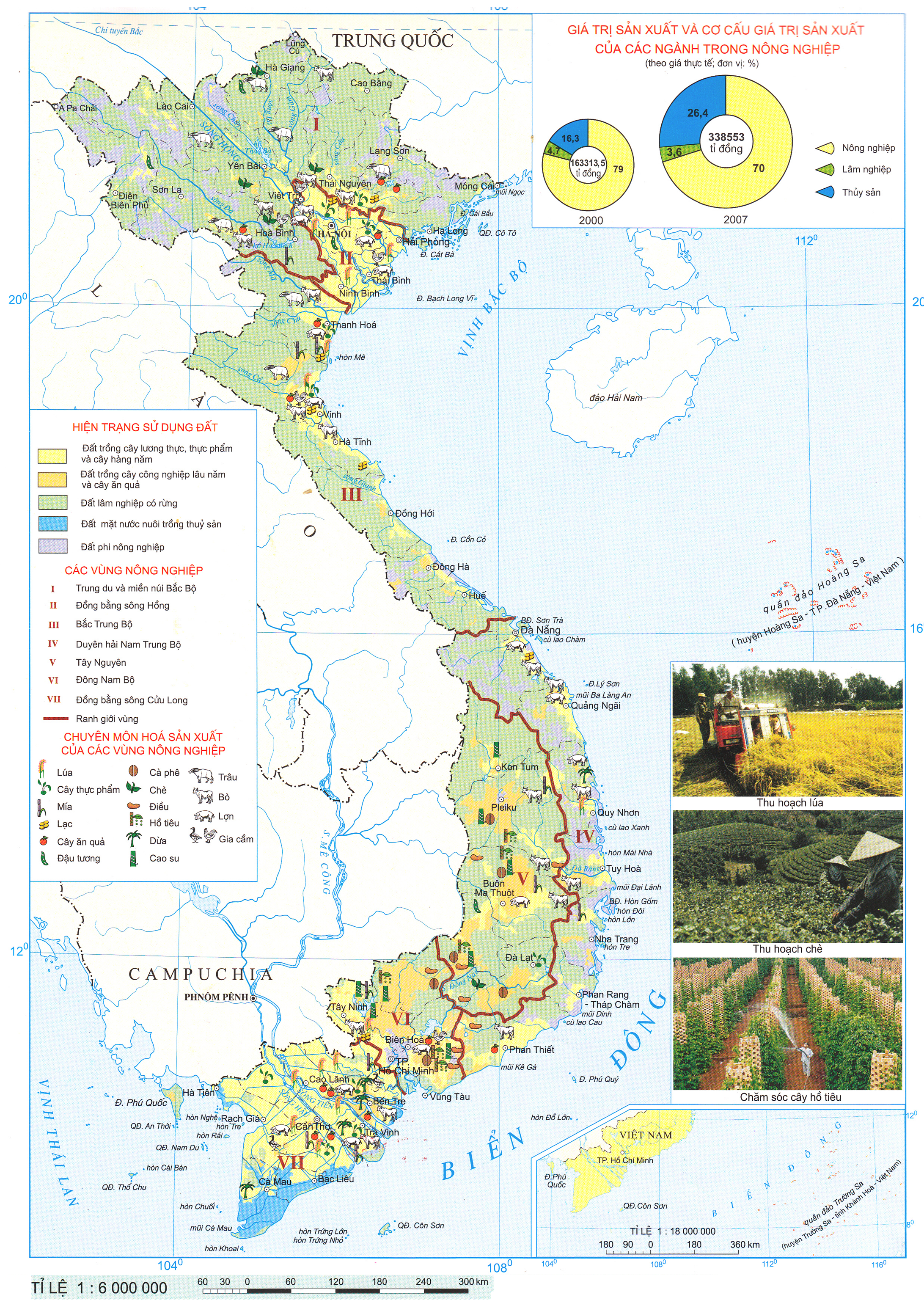 – Bảy vùng nông nghiệp có ranh giới xác định với kí hiệu chữ số La-mã lần lượt từ I đến VII bao gồm: I – Trung du và miền núi Bắc Bộ; II – Đồng bằng sông Hồng; III – Bắc Trung Bộ; IV – Duyên hải Nam Trung Bộ; V – Tây Nguyên; VI – Đông Nam Bộ; VII – Đồng bằng sông Cửu Long.