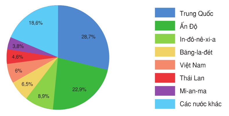 Hinh 8.2. Biểu đồ tỉ lệ sản lượng lúa gạo của một số quốc gia châu Á so với thế giới (%) năm 2003