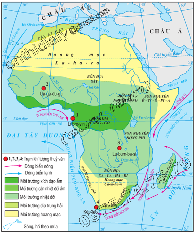 + Châu Phi còn chịu ảnh hưởng của các dòng biển lạnh, các dãy núi ăn sát ra biển cũng ngăn cản ảnh hưởng của biển vào sâu đất liền.