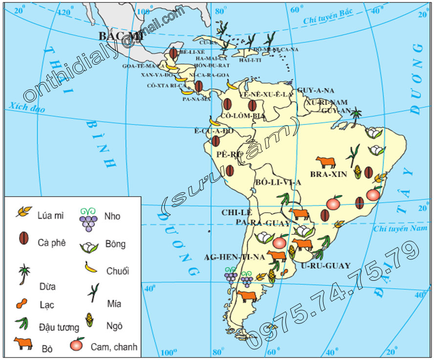 Hinh 44.4. Lược đồ nông nghiệp Trung và Nam Mĩ
