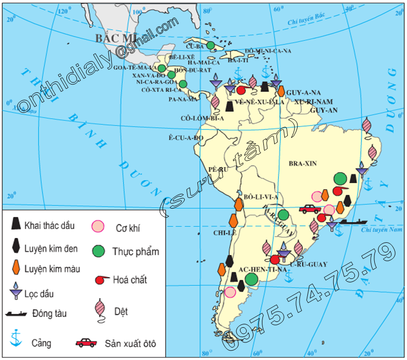 Hinh 45.1. Lược đồ phân bố công nghiệp Trung và Nam Mĩ