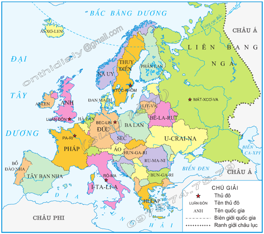 – Phần lãnh thổ châu Âu chủ yếu là đồng bằng, đồi thấp.