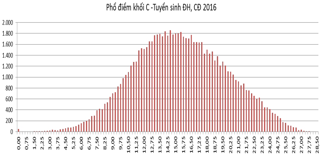 Phổ điểm khối C - Tuyển sinh ĐH, CĐ năm 2016