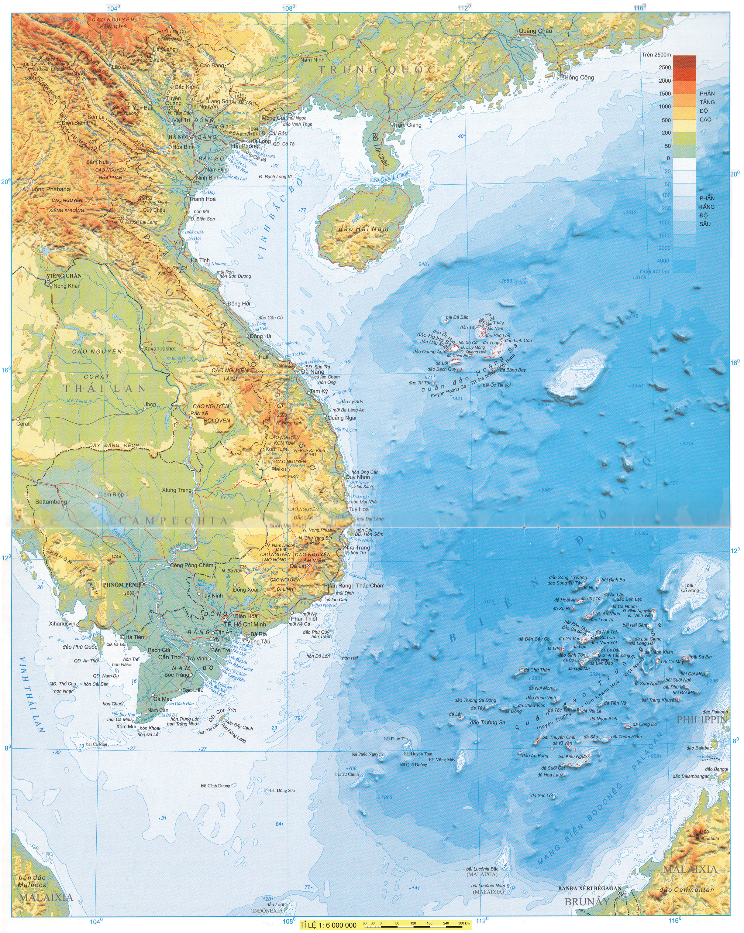 Trên bản đồ hình thể, các nội dung được tập trung thể hiện là những nét khái quát về hình thể lãnh thổ Việt Nam: