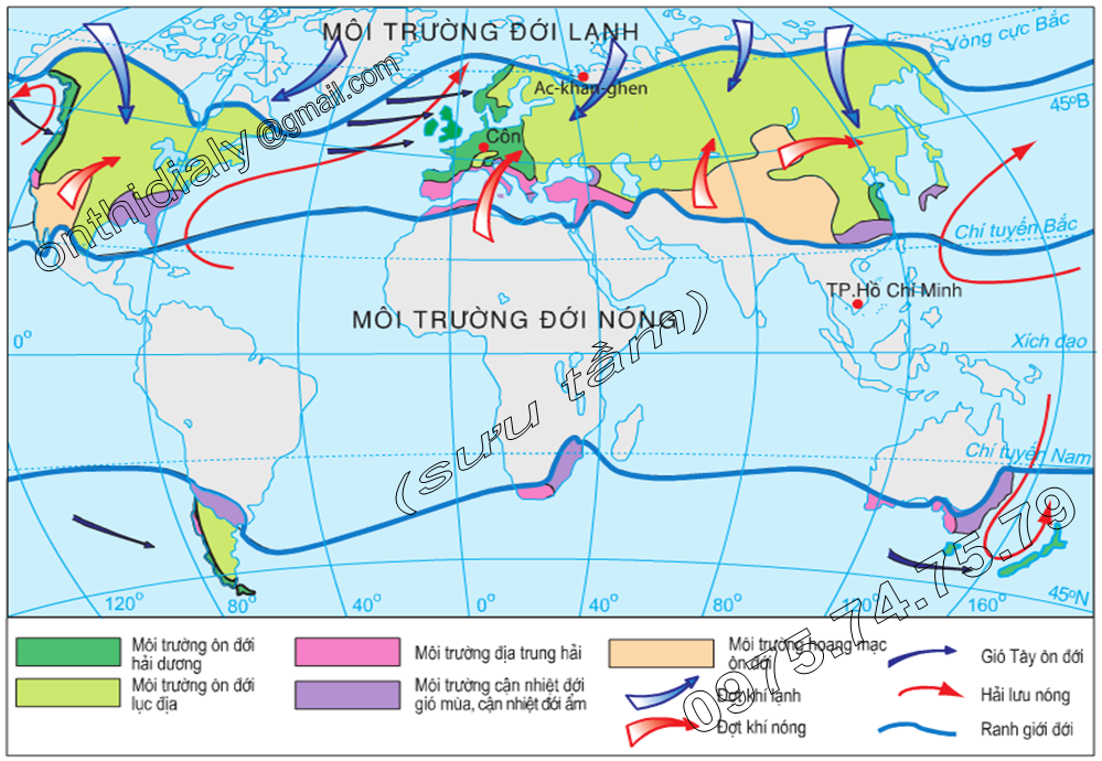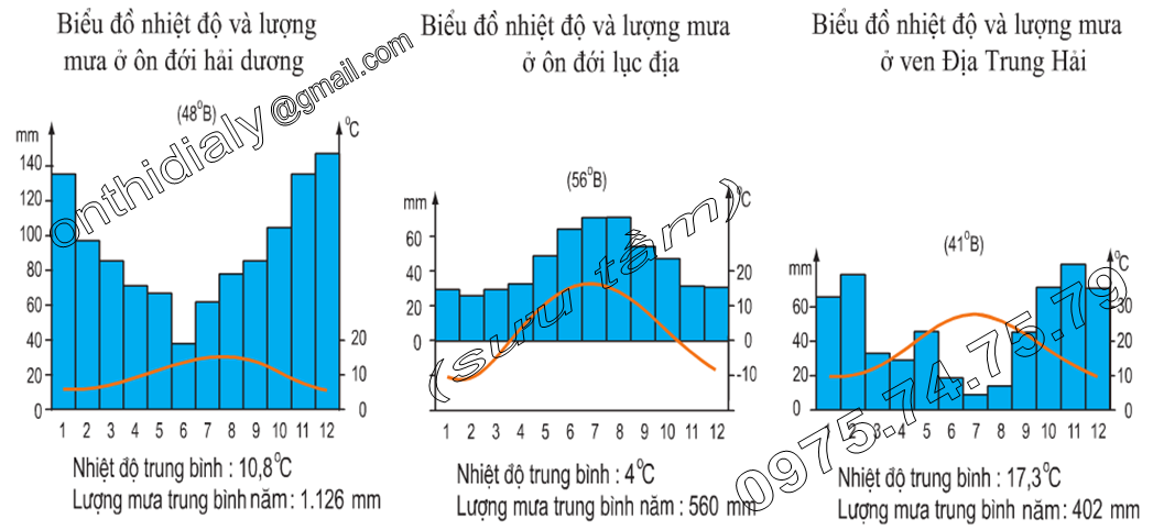 . Ờ gần chí tuyến có môi trường địa trung hải: mùa hạ nóng và khô, mùa đông ấm áp, mưa vào thu đông,…