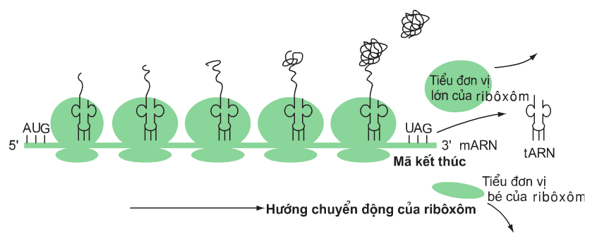 Hình 1.1. Cấu trúc chung của một gen cấu trúcHình 1.2. Sơ đồ minh họa quá trình nhân đôi ADNHình 2.1. Cấu trúc của tARNHình 2.2. Sơ đồ khái quát quá trình phiên mãHình 2.3. Sơ đồ cơ chế dịch mãHình 2.4. Sơ đồ hoạt động của pôliribôxôm trong quá trình dịch mãHình 3.1. Sơ đồ mô hình cấu trúc của Opêron Lac ở vi khuẩn đường ruột (E.coli)Hình 3.2a. Sơ đồ hoạt động của các gen trong opêron Lac khi môi trường không có lactôzơHình 3.2b. Sơ đồ hoạt động của các gen trong opêron Lac khi môi trường có lactôzơHình 4.1. Đột biến G-X A-T do kết cặp không hợp đôi trong nhân đôi ADNHình 4.2. Đột biến A-T G-X do tác động của 5BU