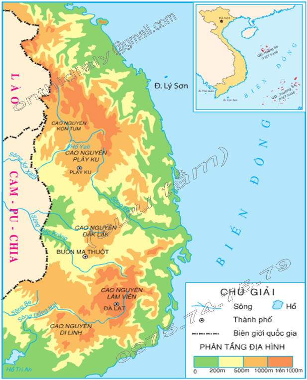 Hinh 1. Lược đồ các cao nguyên ở Tây Nguyên