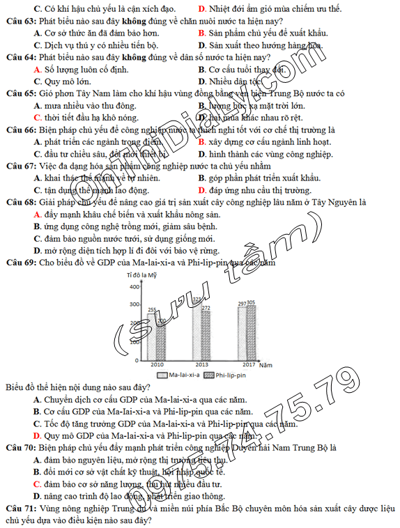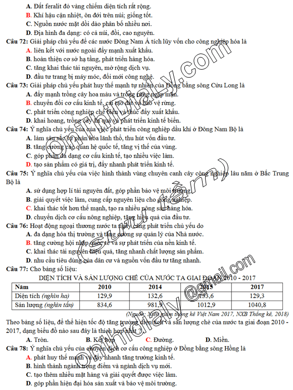 Đề thi chính thức môn Địa lý kỳ thi THPT quốc gia năm 2019