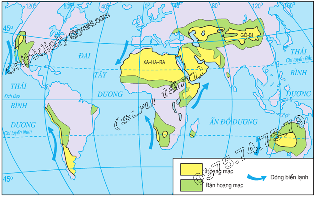 Hinh 19.1. Lược đồ phân bố hoang mạc trên thế giới