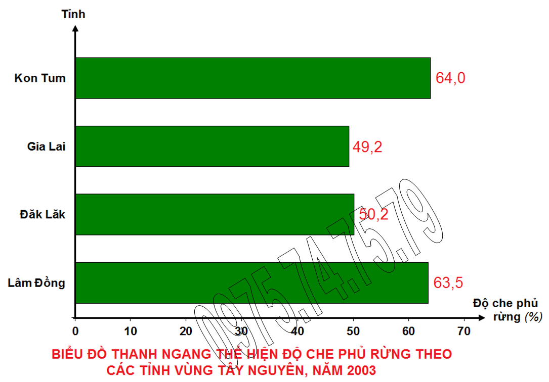 Vẽ biểu đồ thanh ngang thể hiện độ che phủ rừng theo các tỉnh và nêu nhận xét.