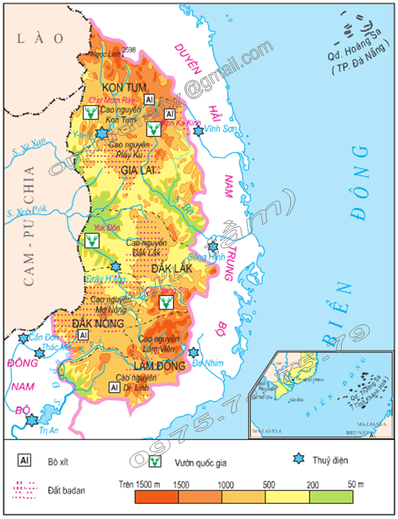 Hình 28.1. Lược đồ tự nhiên vùng Tây Nguyên