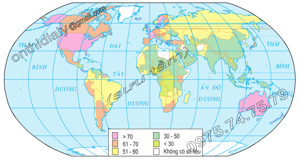 – Các nước phát triển: Khoảng 80% (50 – 79%) Hoa Kì 80%; Tây Âu 50 – 79%.