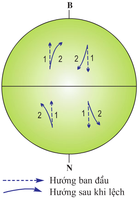 Hinh 5.4. Sự lệch hướng chuyển động của các vật thể trên bề mặt Trái Đất
