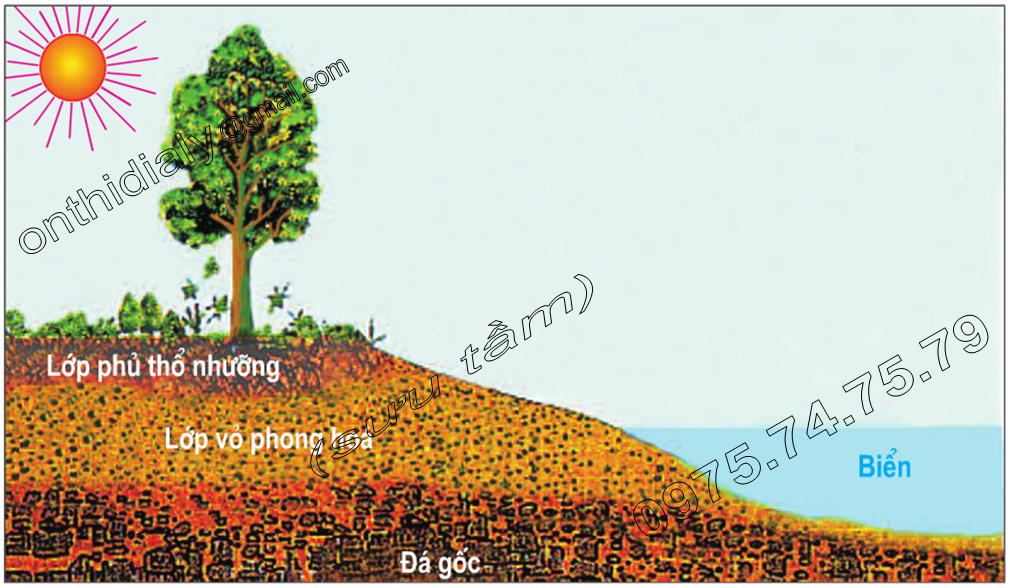 – Tác động của nhiệt và ẩm làm cho đá gốc bị phá hủy thành những sản phẩm phong hóa, rồi sau đó tiếp tục bị phong hóa thành đất.