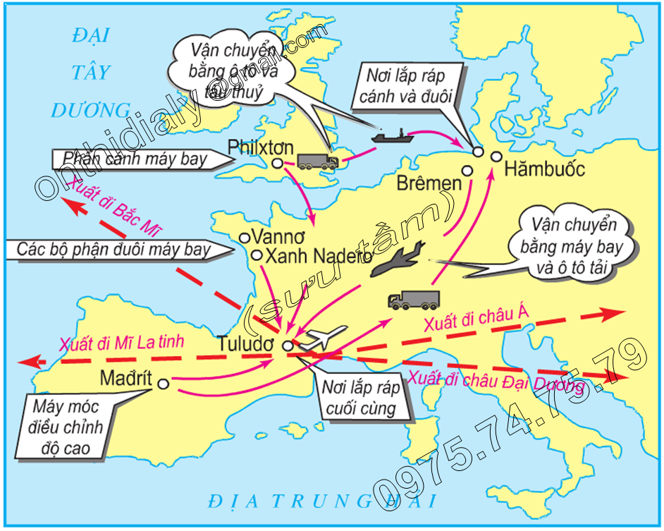 – Tổ hợp công nghiệp hàng không E – bớt (Airbus) có trụ sở ở Tu-lu-dơ (Pháp) do Đức, Anh, Pháp sáng lập đang phát triển mạnh và cạnh tranh với các hãng hàng không hàng đầu của Hoa Kỳ (Boeing).