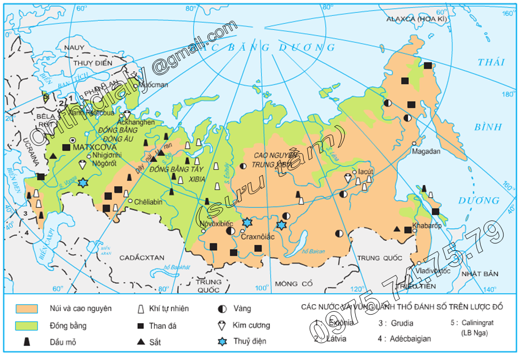 Hinh 8.1. Địa hình và khoáng sản Liên Bang Nga
