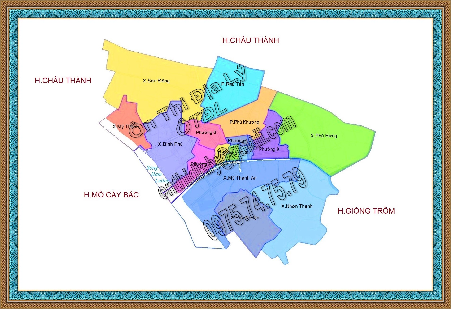 ❤️ 💚 💙 Bản đồ của tỉnh Bến Tre bao gồm 09 đơn vị hành chính (01 thành phố và 08 huyện): Thành phố Bến Tre, huyện Châu Thành, huyện Chợ Lách, huyện Mỏ Cày Nam, huyện Giồng Trôm, huyện Bình Đại, huyện Ba Tri, huyện Thạnh Phú và huyện Mỏ Cày Bắc.