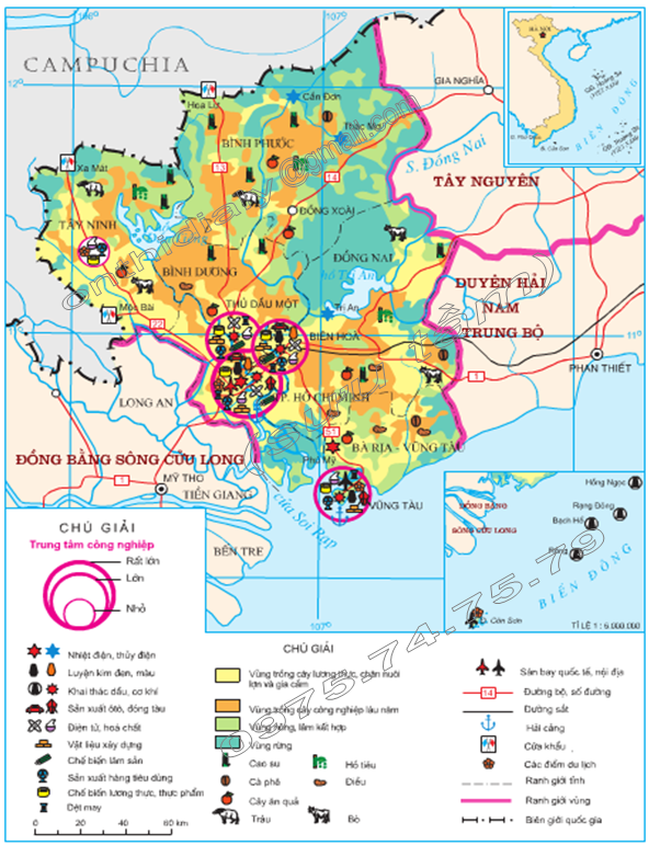 – Gồm các tỉnh, thành phố: TP.Hồ Chí Minh, Bình Dương, Bình Phước, Tây Ninh, Đồng Nai và Bà Rịa-Vũng Tàu.