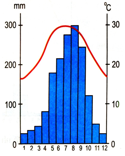 Hinh 55. Biểu đồ nhiệt độ, lượng mưa của Hà Nội